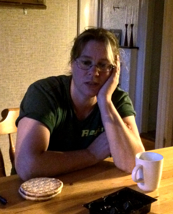Våra kunder är fantastiska på att lämna sina förpackningar till återvinning. Det märks särskilt på jul. Då blir det många extrasäckar med julpapper. Trots att man är ung och rask(!?) händer det att man ramlar in hos brorsan efter turen och ser ut så här. Då är det härligt att få en kopp kaffe i näven.